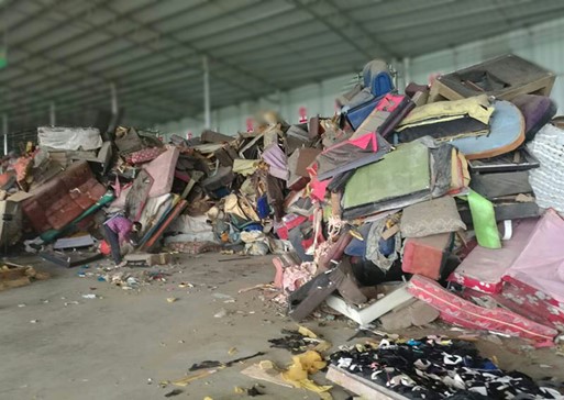 适用于大批量废旧床垫、沙发资源化处理,通过双轴撕碎机与四轴破碎机的两级破碎,使大件垃圾中的铁质金属与可燃物质充分分离,破碎后的物料经过磁选除铁、RDF造粒等工艺流程,实现最大化资源循环利用。